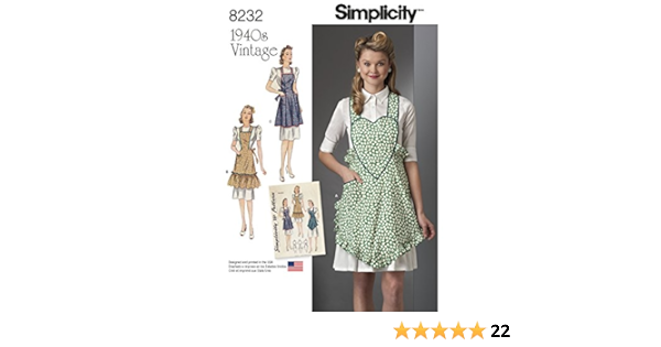 Amazon Com Simplicity 8232 Vintage Apron Sewing Pattern 3 Styles Sizes S L Arts Crafts Sewing