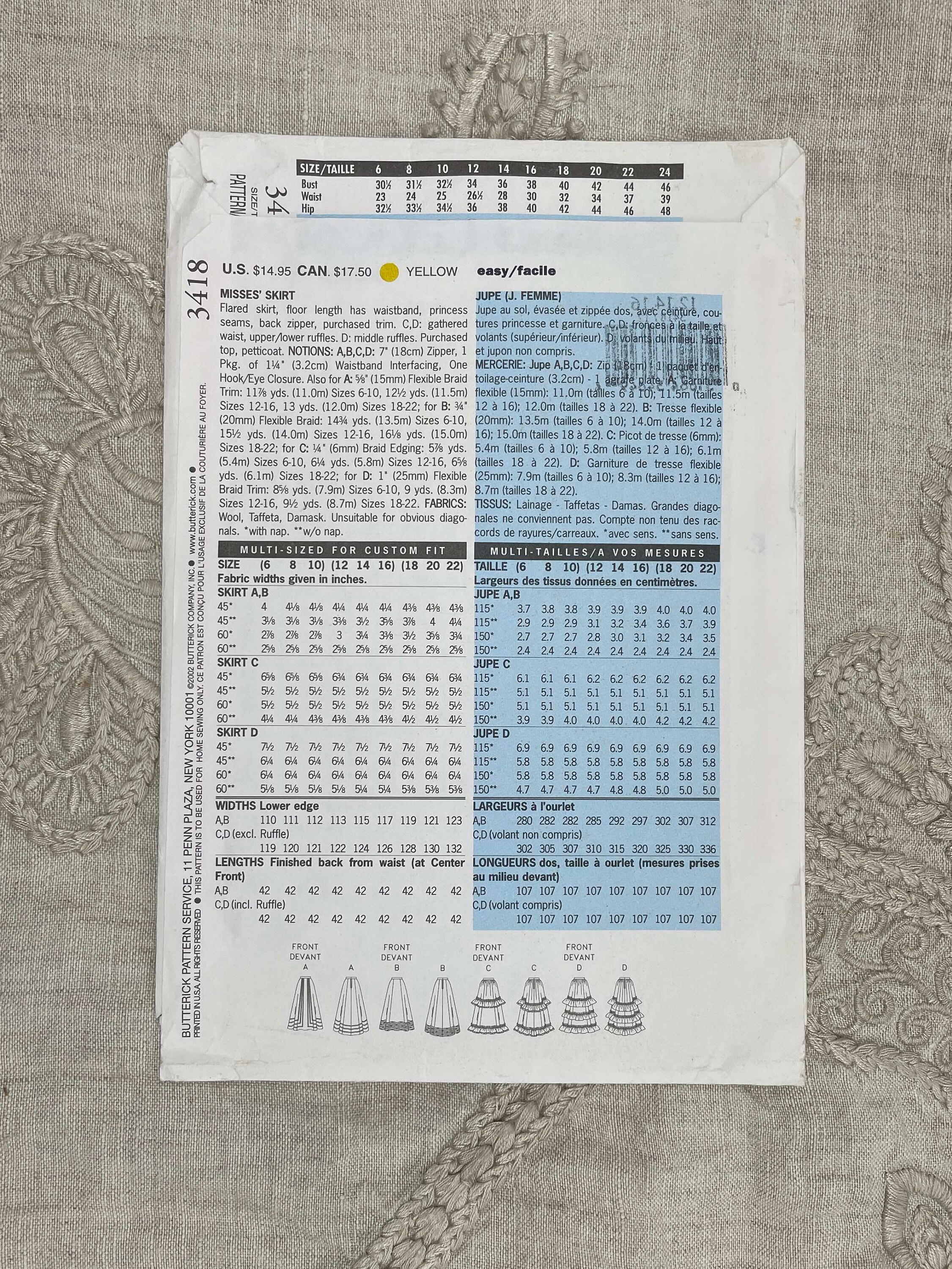 Butterick 3418 Victorian Bustle Walking Skirt Pattern Size Etsy